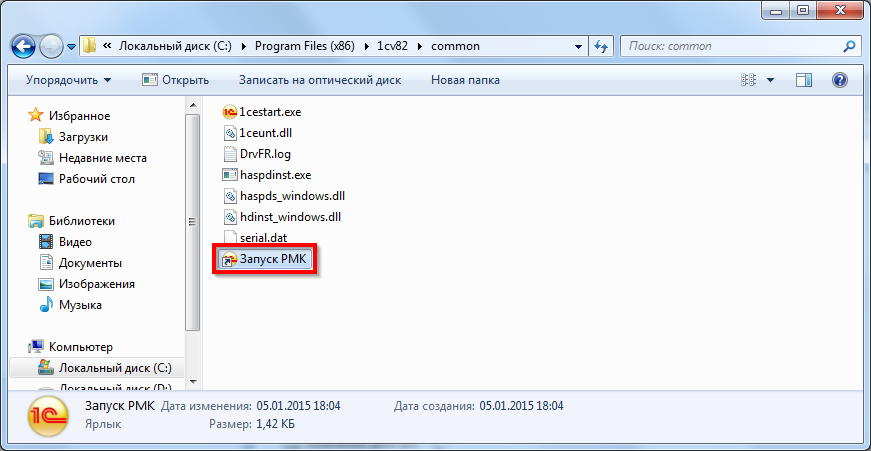 В рассматриваемом нами примере операционная система 64-битная, поэтому файл «1cestart.exe» должен располагаться в каталоге «C:\Program Files (x86)\1cv82\common\».