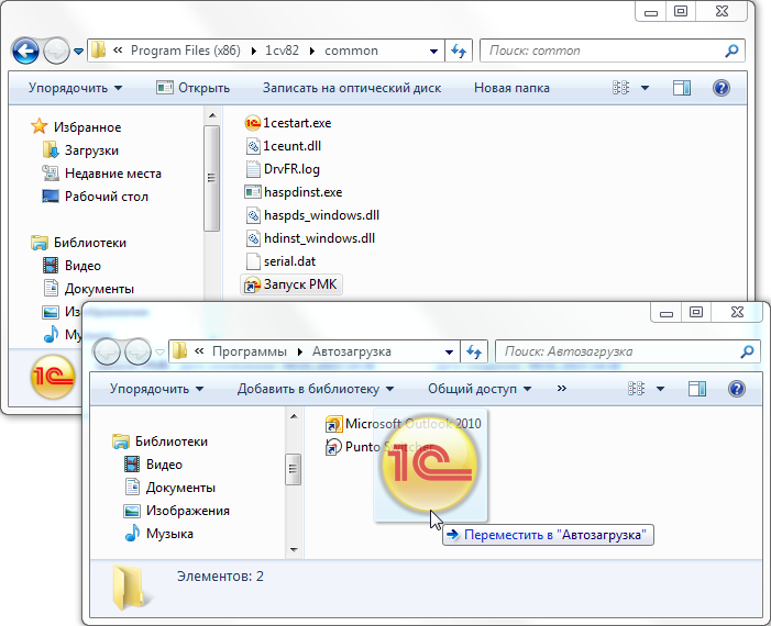 Перенесем наш ярлык «Запуск РМК» из папки «common» в папку «Автозагрузка».