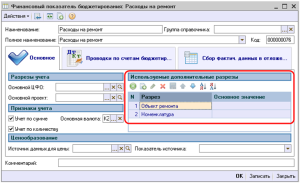 Аналогичным образом можно добавить дополнительные разрезы и для уже созданных финансовых показателей. Важно помнить, что после начала использования финансовых показателей в документах отключить разрезы показателя будет невозможно.
