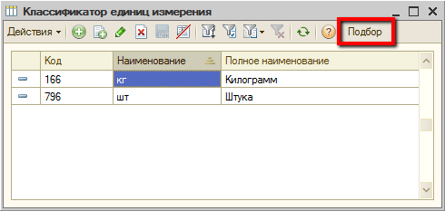 После нажатия на кнопку «ОК» выбранная единица измерения добавится в справочник «Классификатор единиц измерения».