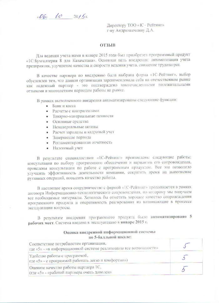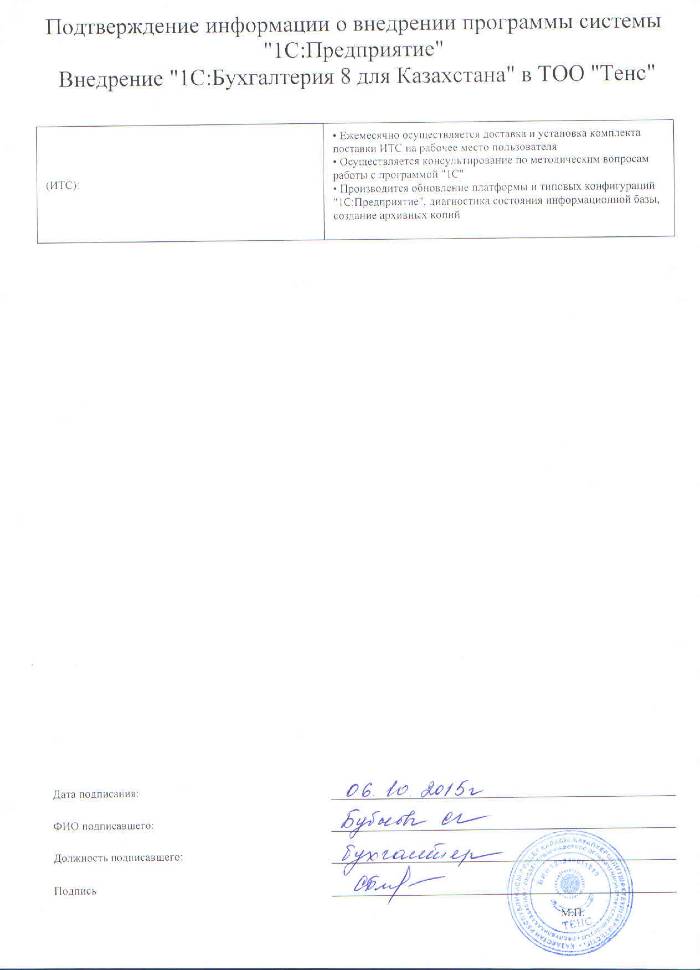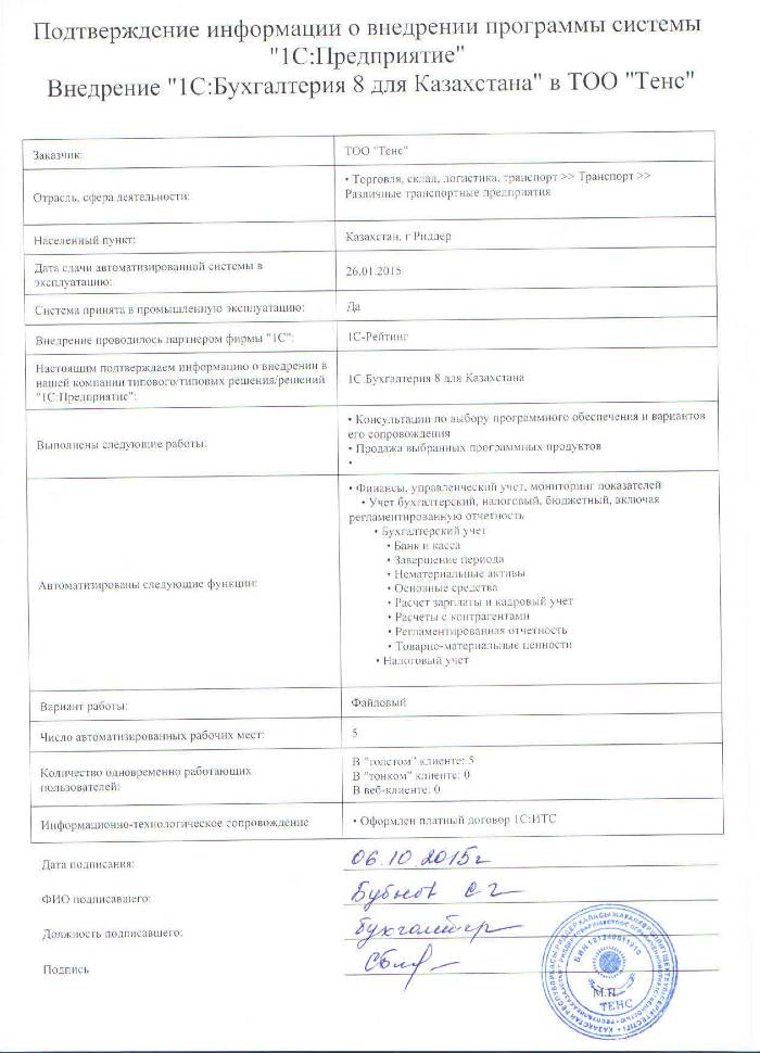 Внедрение 1С:Бухгалтерия 8 для Казахстана в ТОО Тенс