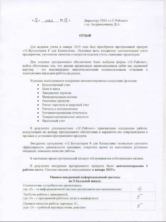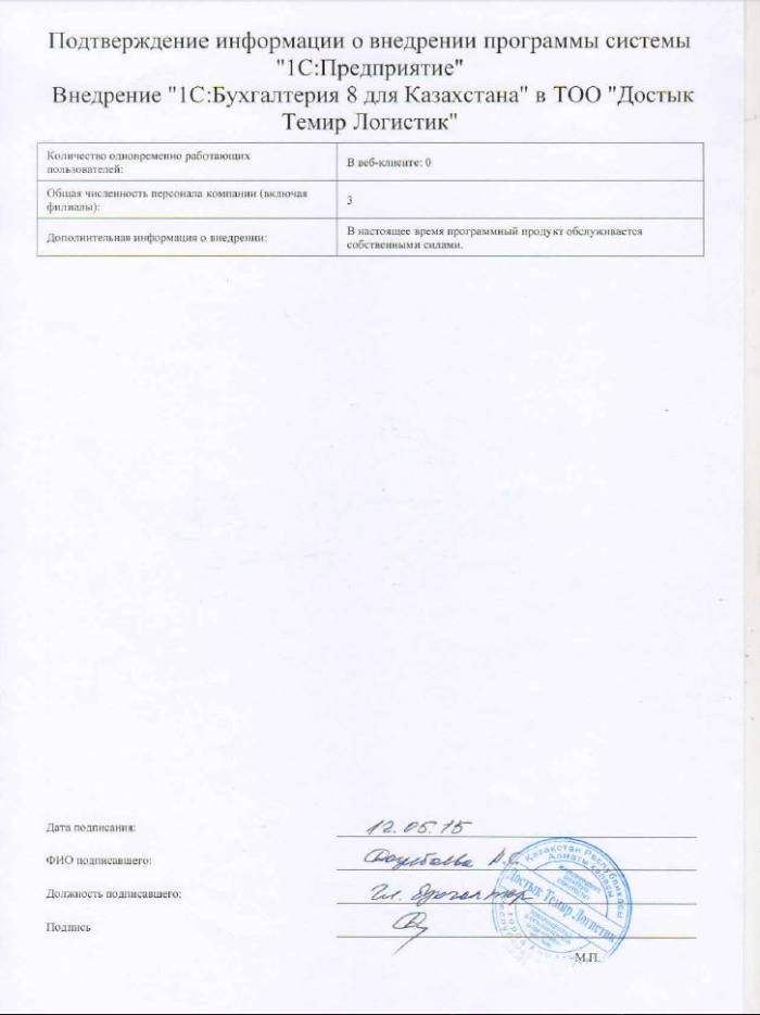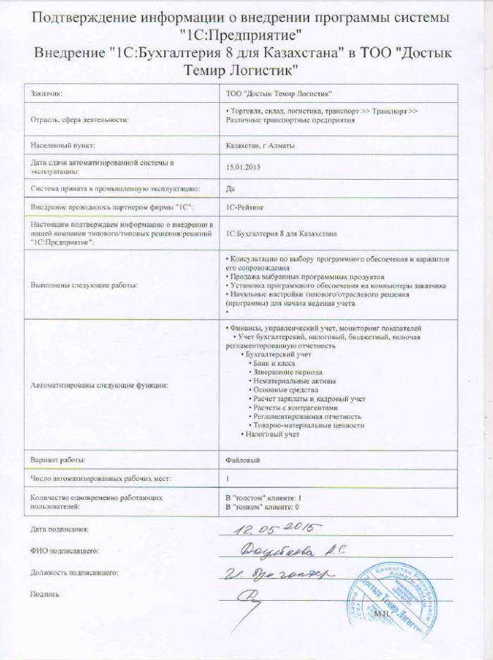 Внедрение 1С:Бухгалтерия 8 для Казахстана в ТОО Достык Темир Логистик