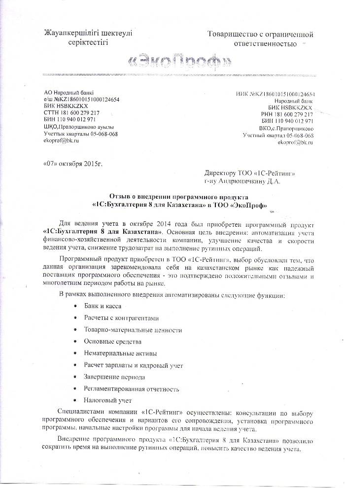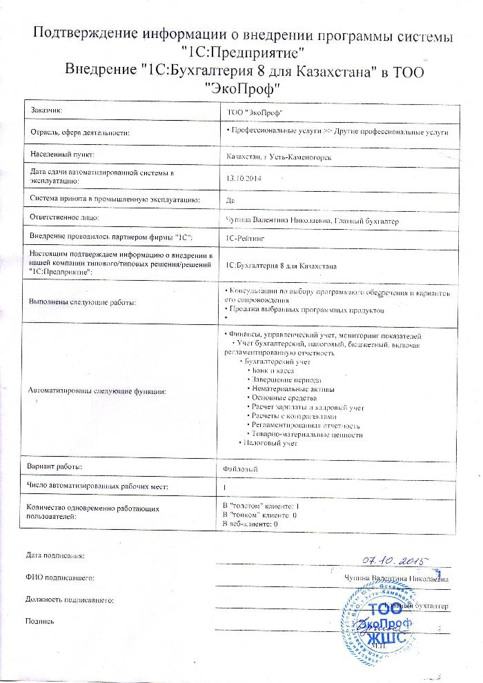| Внедренное типовое решение: | 1С:Бухгалтерия 8 для Казахстана |